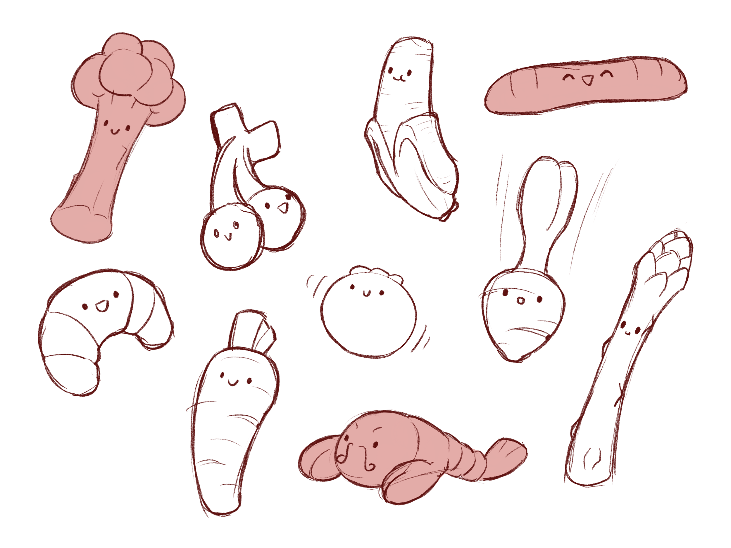 During the ideation process for the Novelty Toy line, we gathered inspiration from different sources. Especially those in the human marketplace. This includes foods, gifts, everyday objects, plants, and products that bring nostalgia. Ultimately, we decided to land on food after much deliberation. To avoid confusing the customer, we worked with the kind of food dogs could eat, even if this product is not meant for consumption. Considering how a dog might interact with our designs, my team and I focused on shape, function, style, play patterns, and overall look to build a connection with the customer.